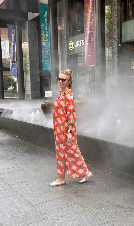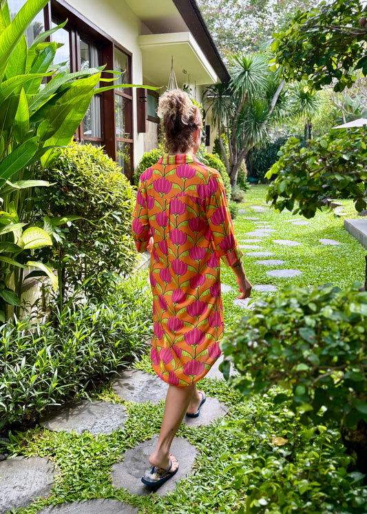 Amalfi Cotton Shirt Dress Orange Pink Lotus