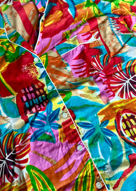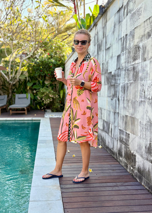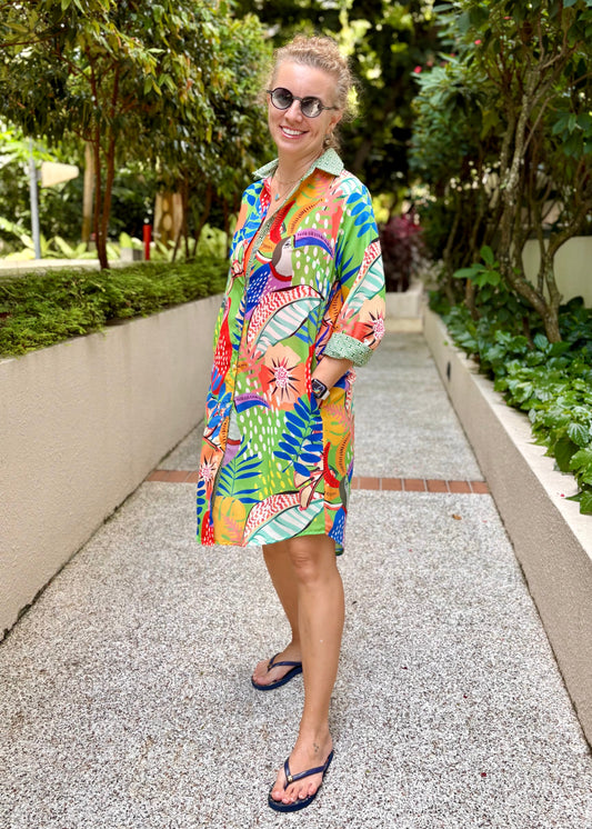 *Amalfi Cotton Shirt Dress Pink Green Floral