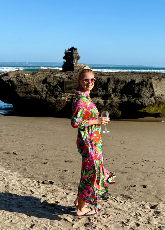 *Amalfi Cotton Shirt Dress Maxi Pink Green Floral