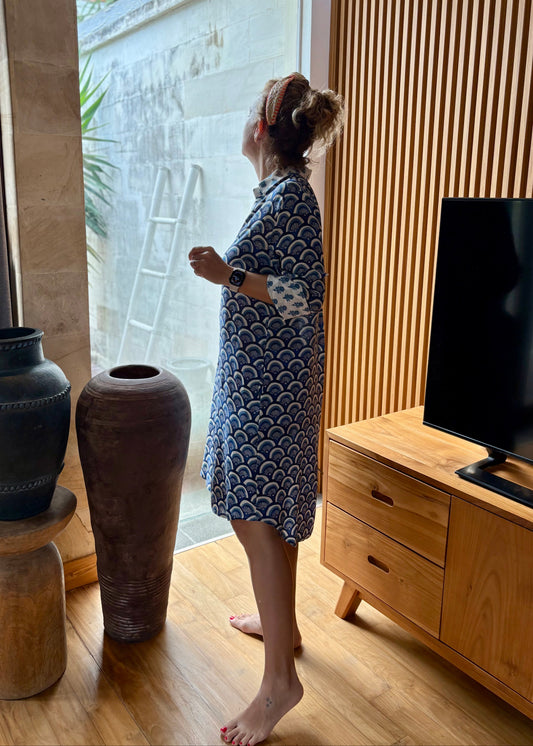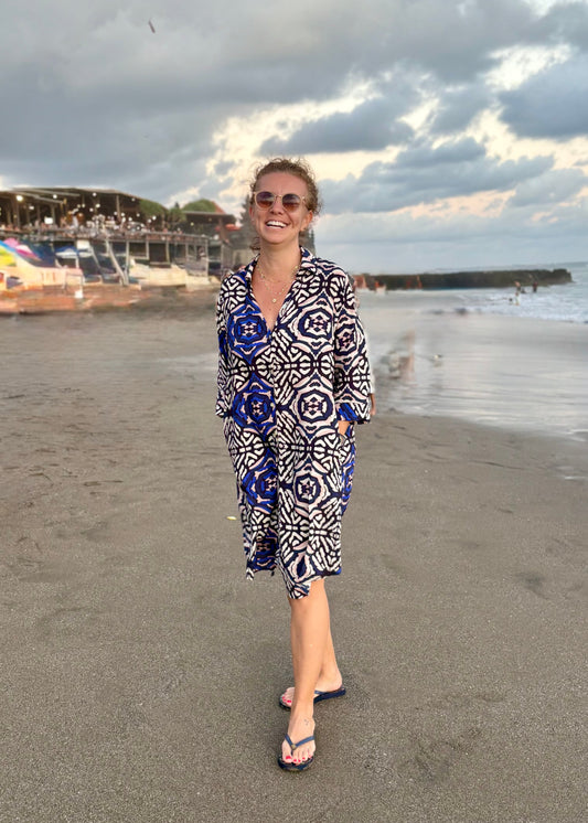 Amalfi Cotton Shirt Dress Navy Pink Batik