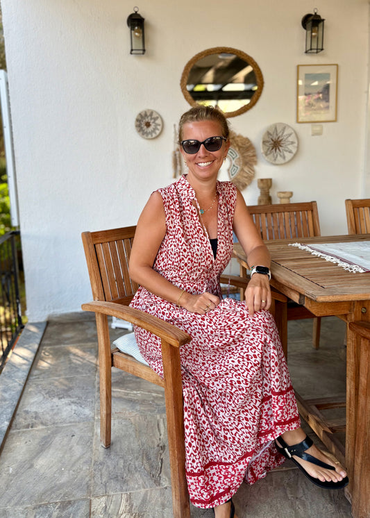 Amalfi Cotton Shirt Dress Maxi Red Green Lotus