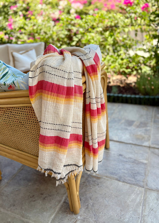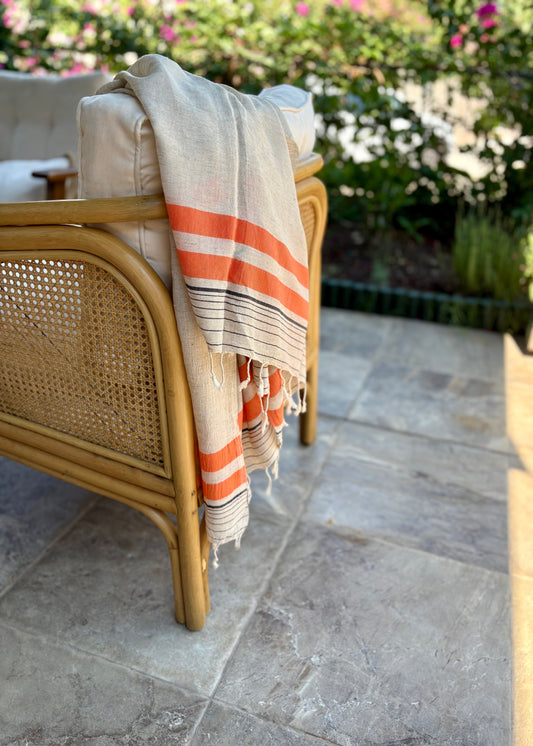 Linen Blend Pestemal Turkish Towels Yellow Red