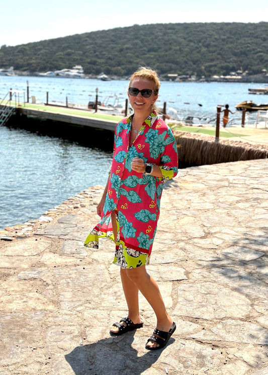 Amalfi Cotton Shirt Dress Pink Turquoise