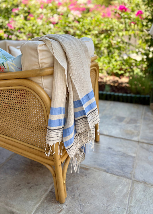 Linen Blend Pestemal Turkish Towels Blue Turquoise