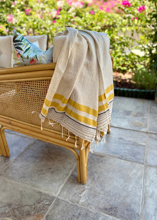 Linen Blend Pestemal Turkish Towels Yellow Black