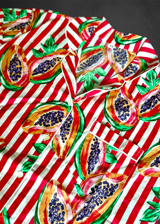 Cotton Block print Pyjamas Short ; Red White Papaya